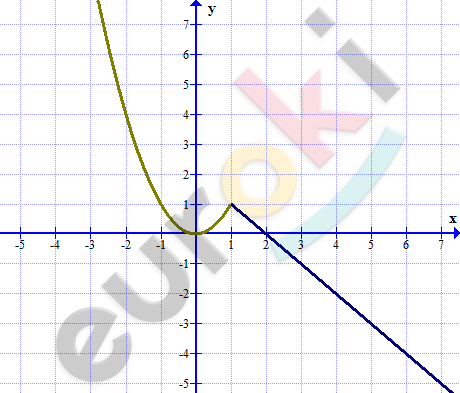 \[y = \left\{ \begin{matrix} x²,\ \ если\ x \leq 1\ \ \ \ \ \ \\ 2 - x,\ \ если\ x > 1 \\ \end{matrix} \right.\ .\]