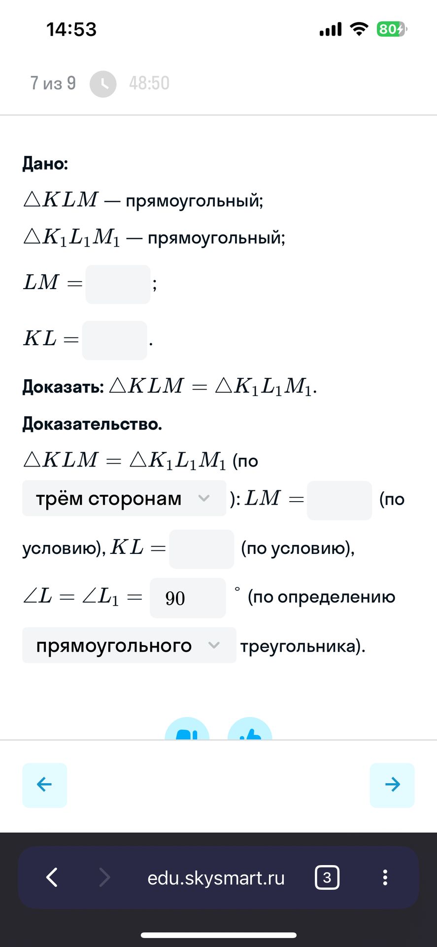 ∠L = ∠L1 = 90 ° (по определению прямоугольного треугольника).