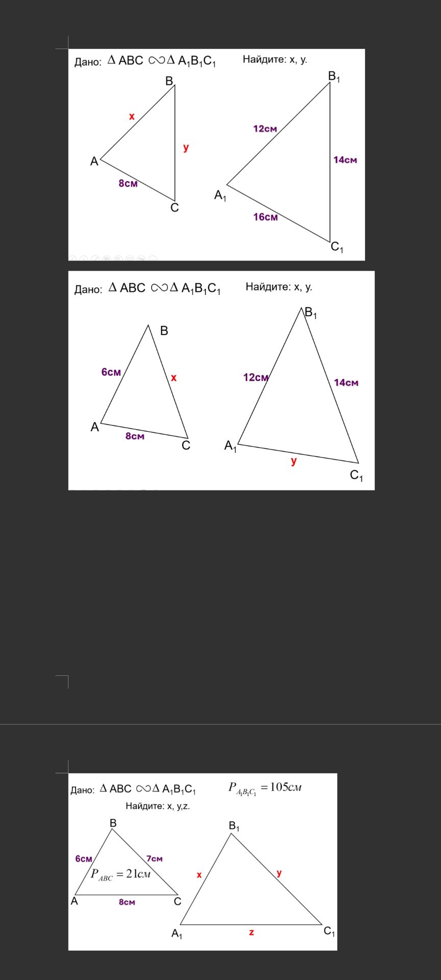 Периметр треугольника A₁B₁C₁ равен 105 см, а периметр треугольника ABC равен 21 см. Тогда:
