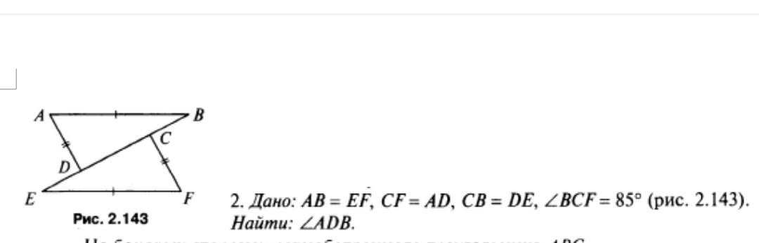 Дано: АВ = EF, CF = AD, CB = DE, ∠BCF = 85°.