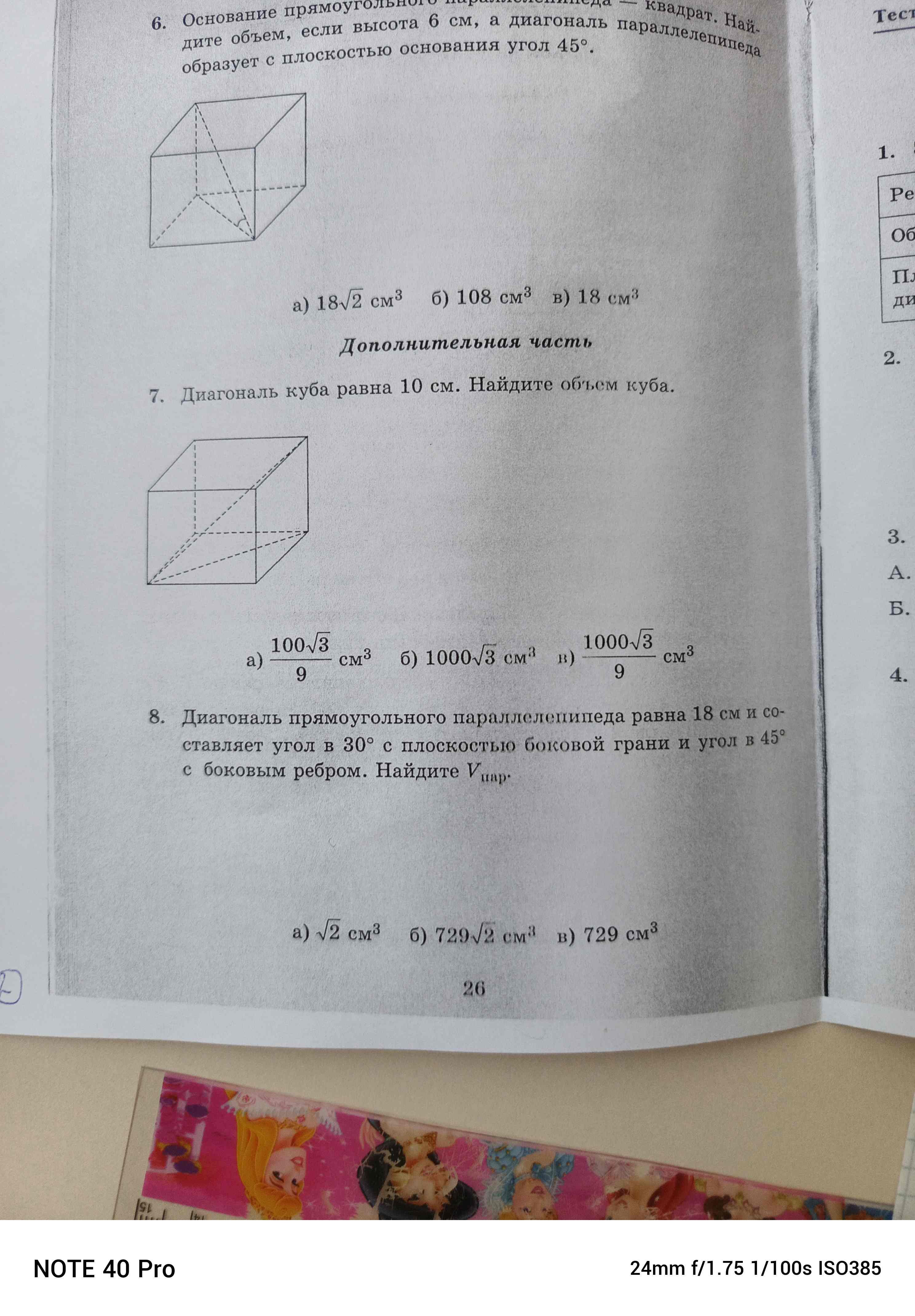 Ответ: б) 729√2 см³