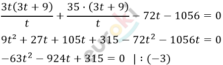 \[\left\{ \begin{matrix} x = \frac{3t + 9}{t}\text{\ \ \ \ \ \ \ \ \ \ \ \ \ \ \ \ \ \ \ \ \ \ \ \ \ \ \ \ \ \ \ \ \ \ } \\ 3tx + 35x - 72t - 1056 = 0 \\ \end{matrix} \right.\ \]