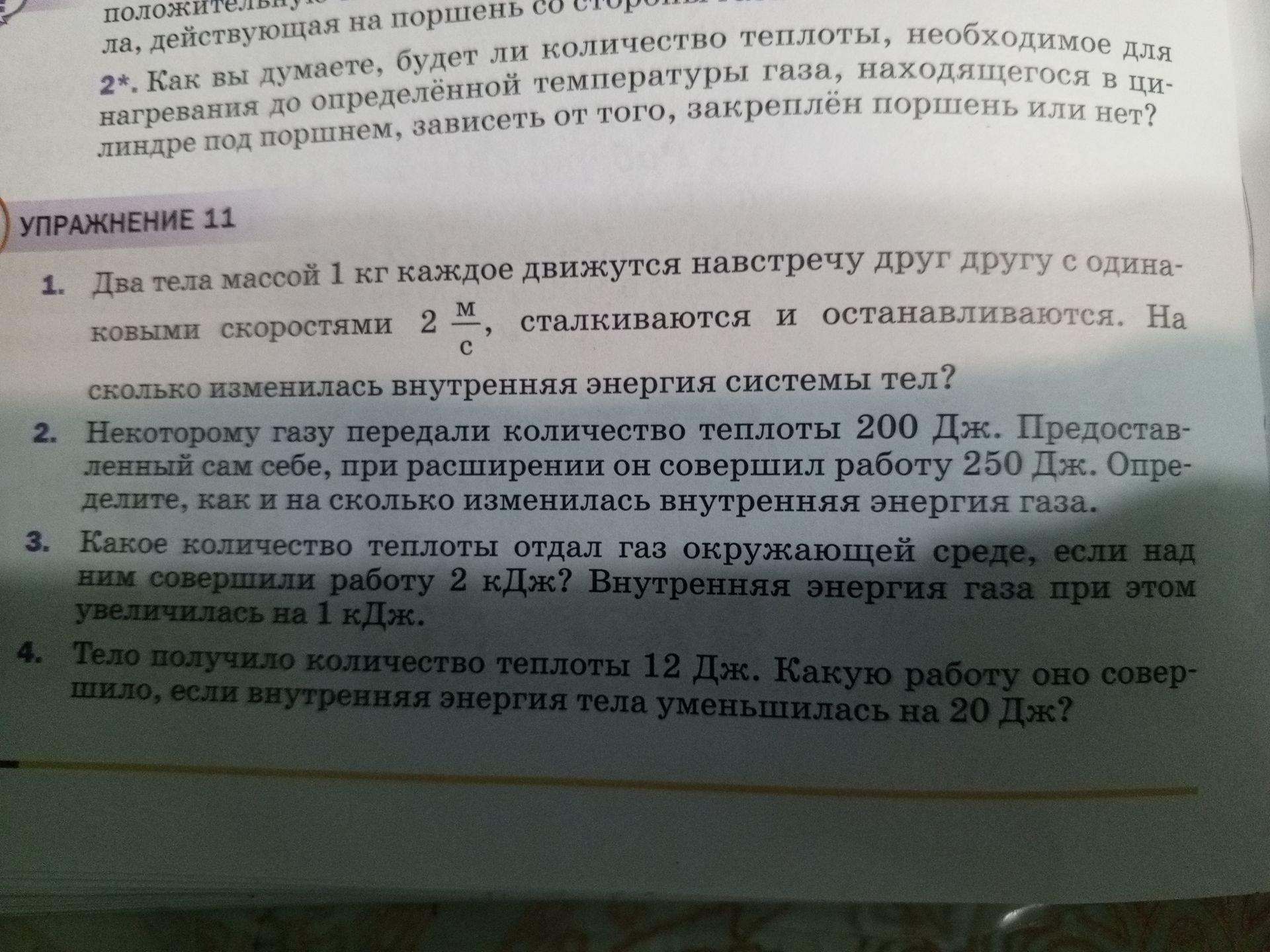 При столкновении двух тел, движущихся навстречу друг другу с одинаковыми скоростями и имеющих одинаковую массу, происходит преобразование кинетической энергии в тепловую энергию. Вся кинетическая энергия переходит во внутреннюю энергию системы.