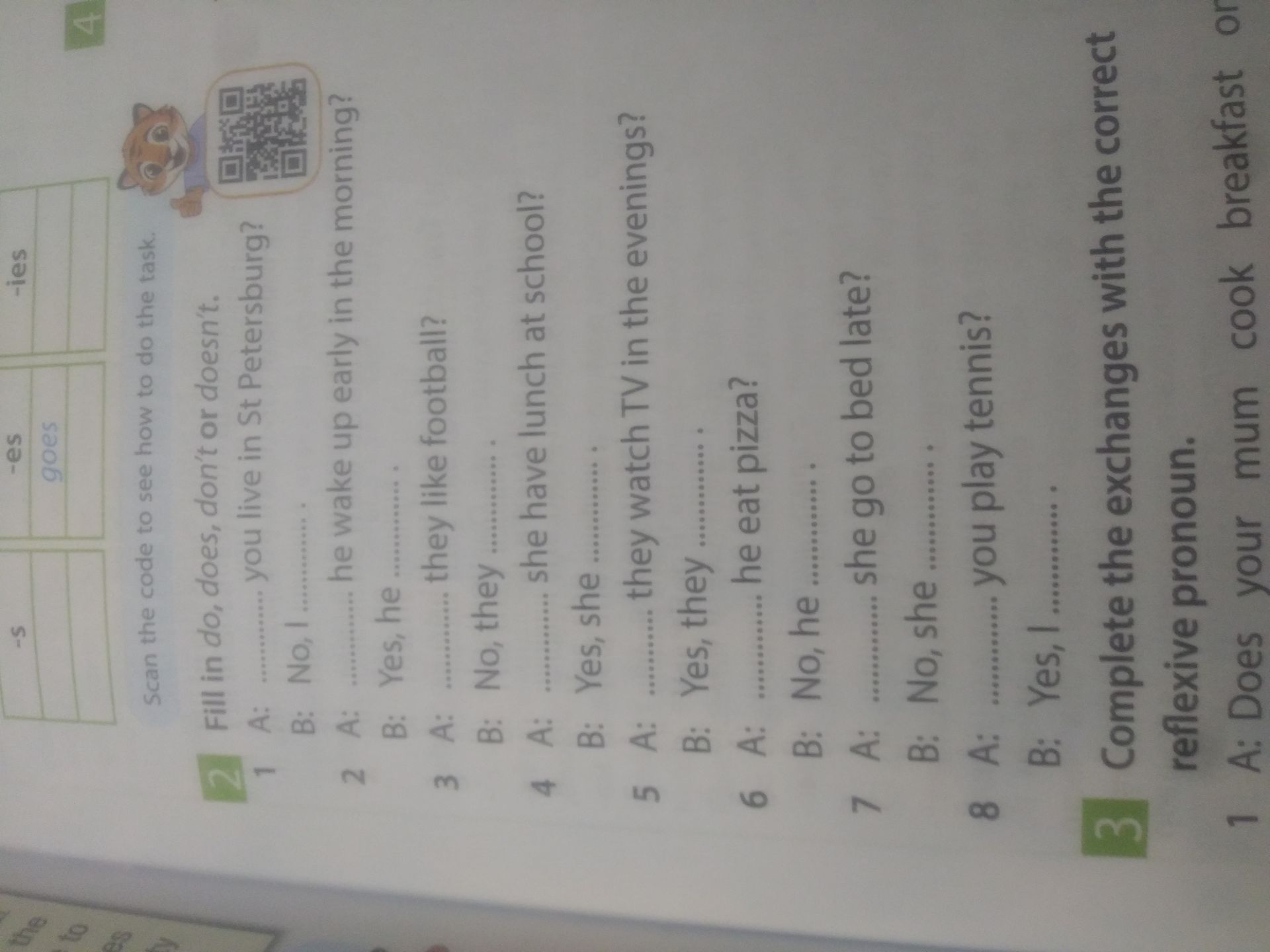 Задание 2. Заполните пропуски, используя do, does, don't или doesn't.