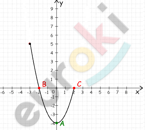 \[y = x^{2} - 4;\ \ \ \ - 3 \leq x \leq 2\]