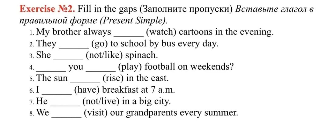 1. My brother always ________ (watch) cartoons in the evening.