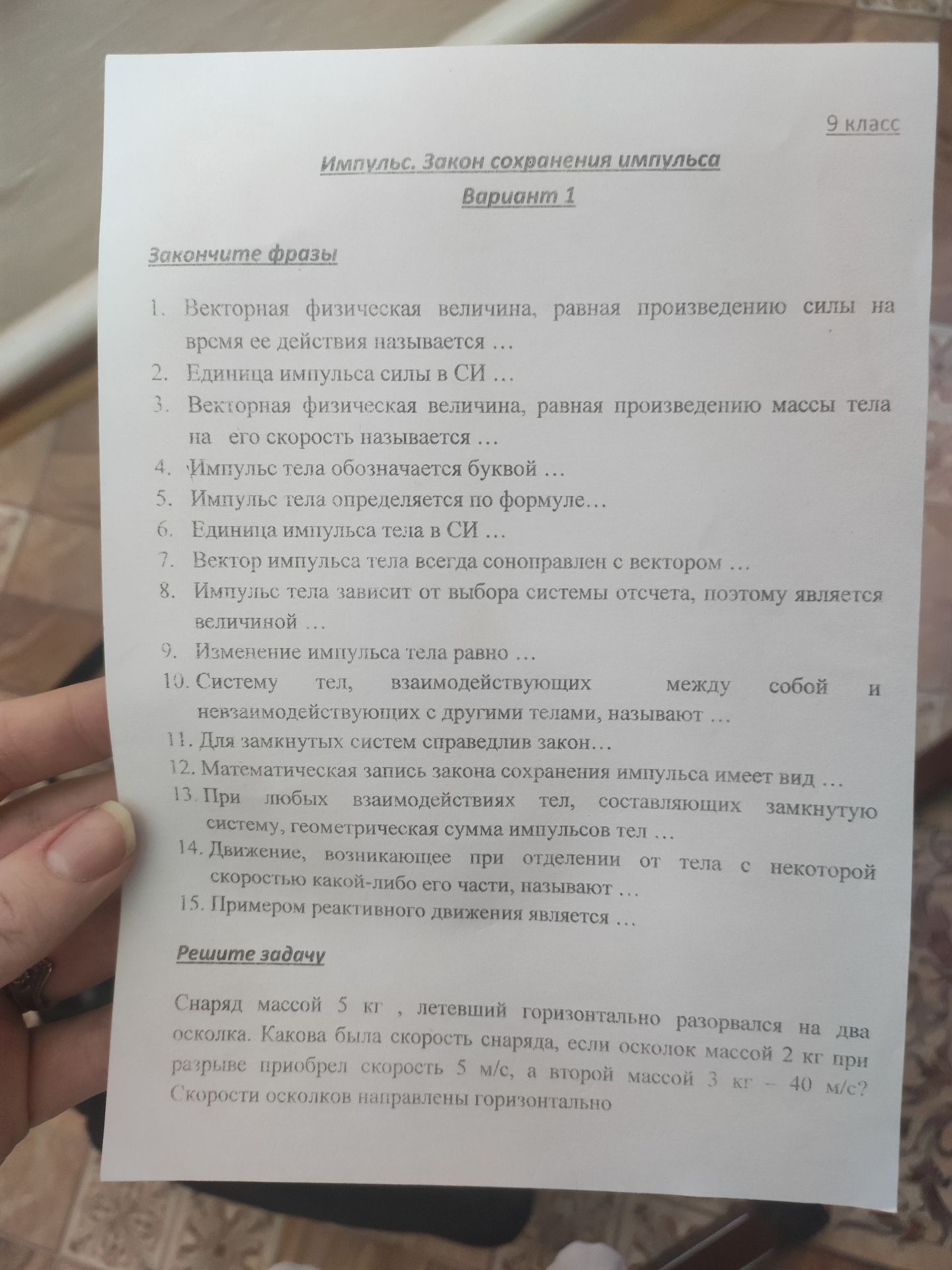 5. Импульс тела определяется по формуле p = mv, где m - масса тела, v - скорость тела.