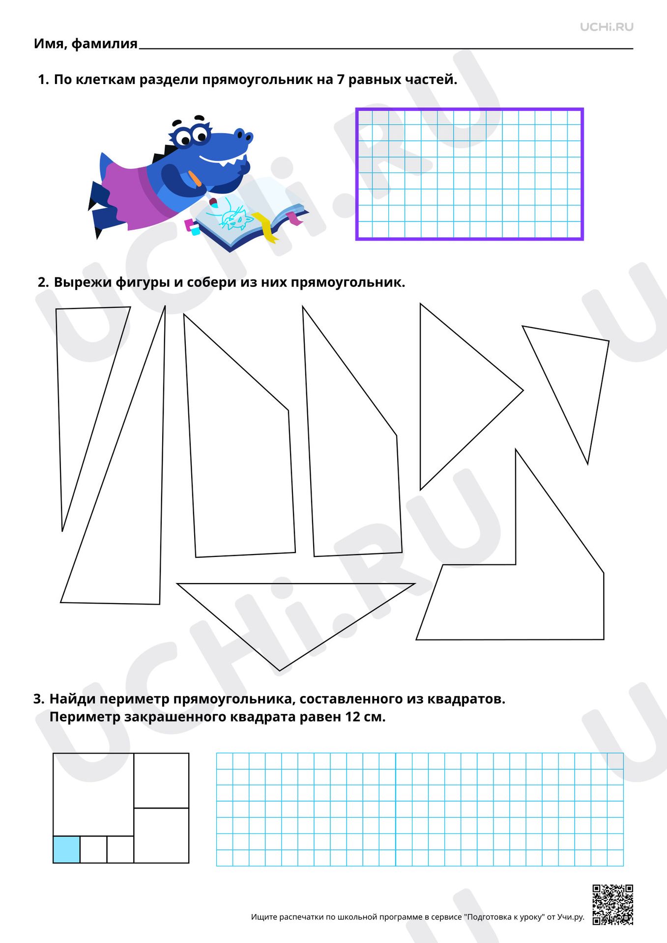 2. Необходимо вырезать фигуры и собрать из них прямоугольник.