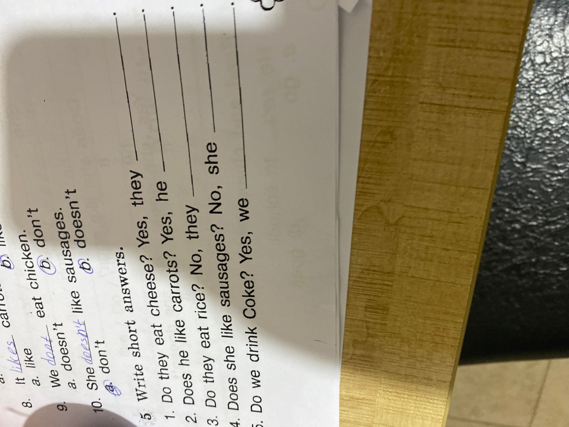 10. She doesn't like sausages. @don't D. doesn't