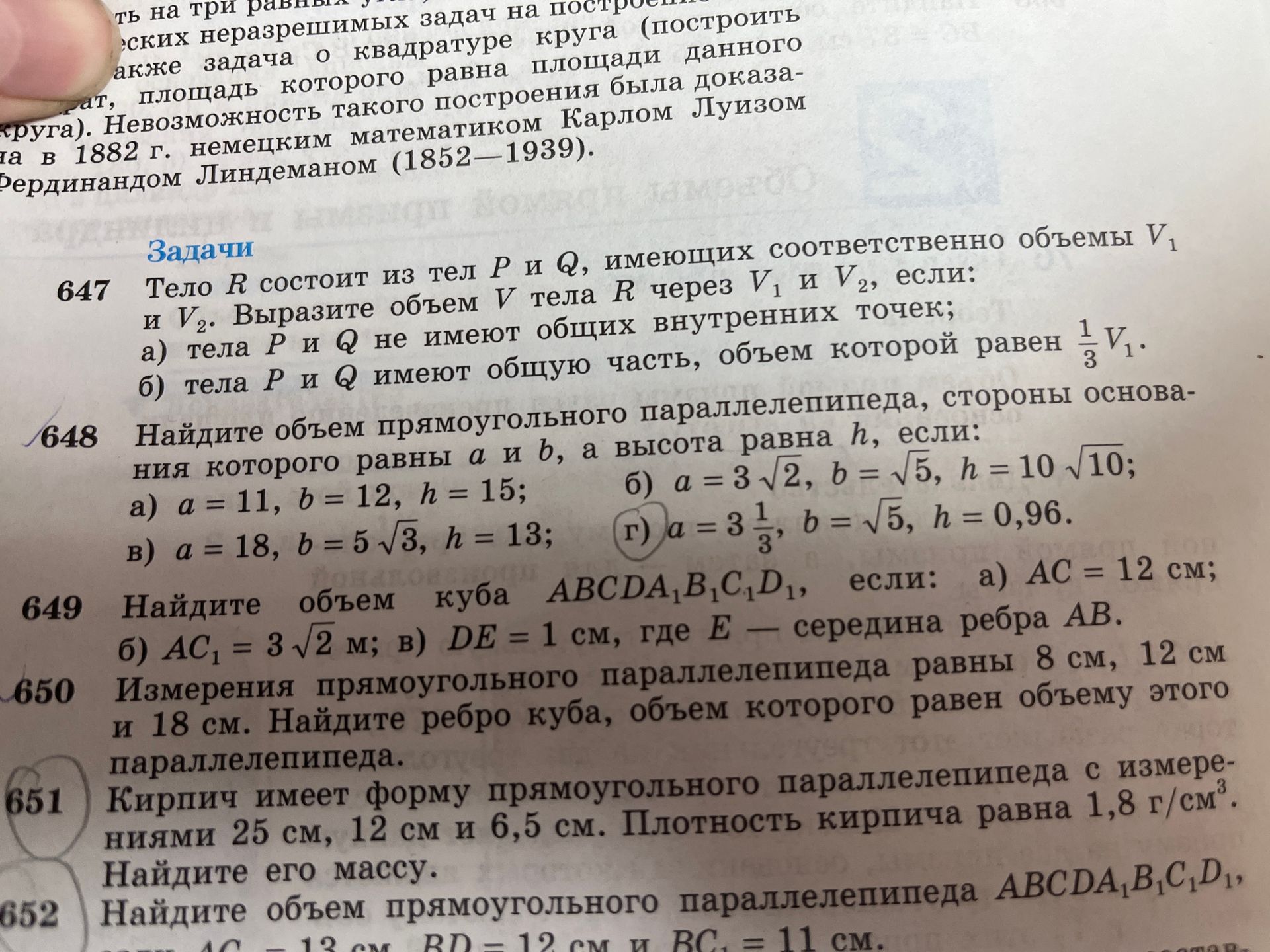 Объем прямоугольного параллелепипеда равен произведению его измерений: