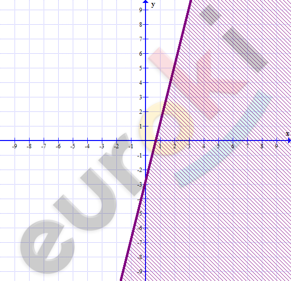 Изобразите на координатной плоскости множество точек, задаваемое неравенством: y<=4x-3.