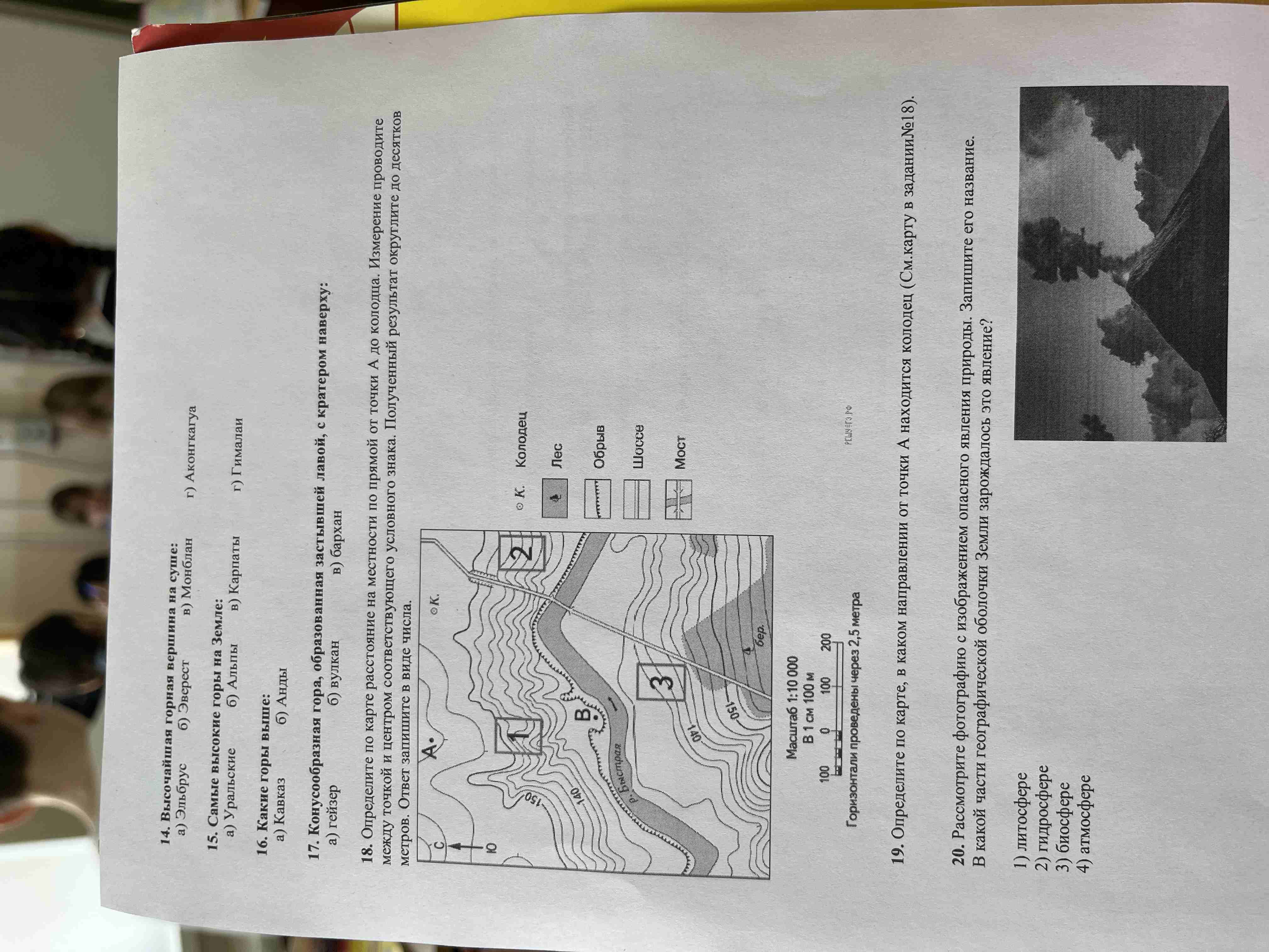 17. Конусообразная гора, образованная застывшей лавой, с кратером наверху: а) гейзер б) вулкан в) бархан