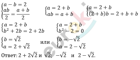 Разность двух чисел равна 2, а половина произведения этих чисел равна их среднему арифметическому. Найдите такие числа.