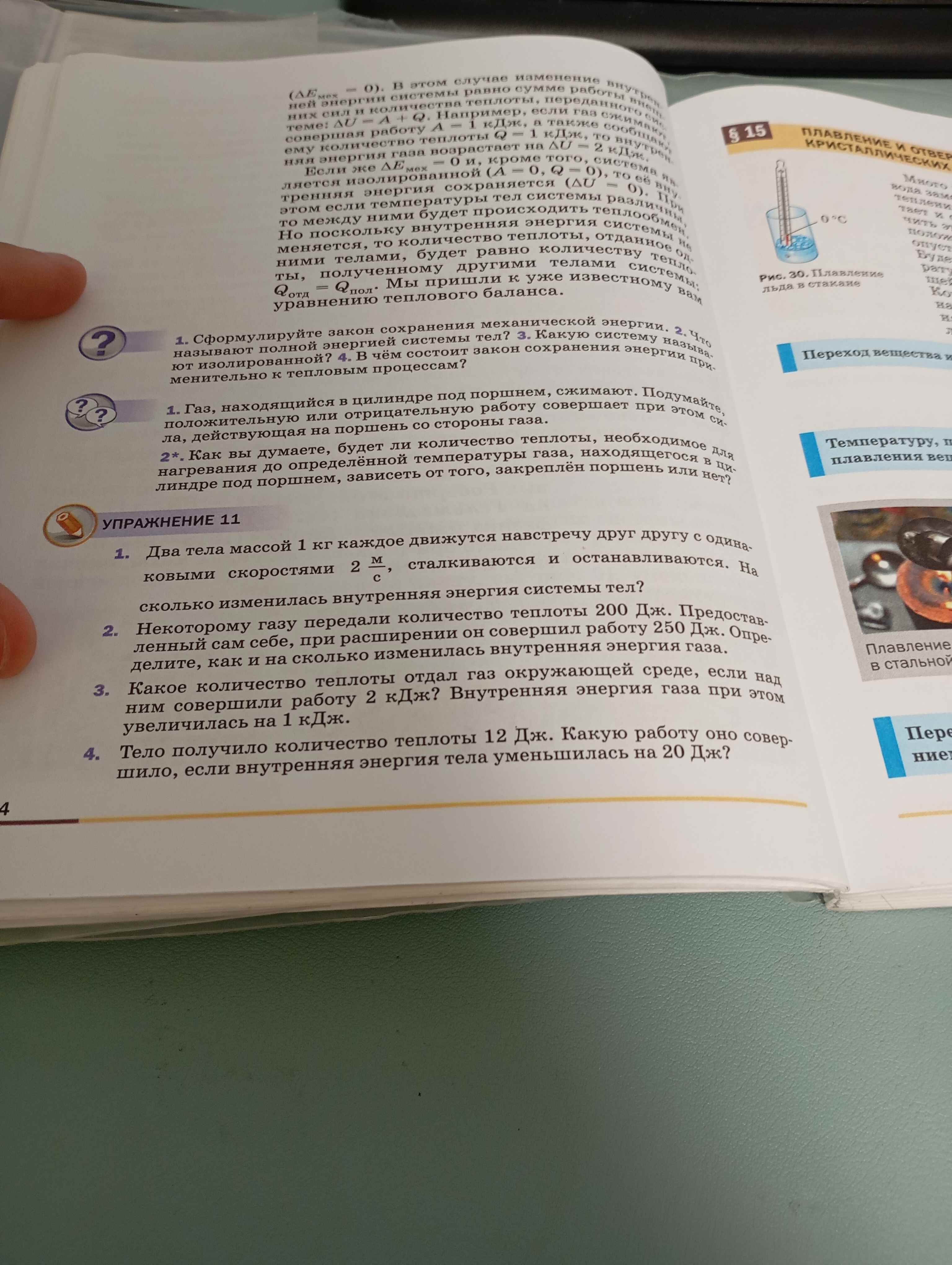 $$A = -2 \text{ кДж} = -2000 \text{ Дж}$$ $$\Delta U = 1 \text{ кДж} = 1000 \text{ Дж}$$ $$Q - ?$$