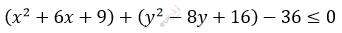 \[(x + 3)^{2} + (y - 4)^{2} \leq 36\]