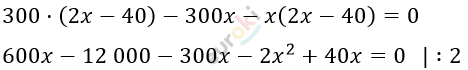 \[\left\{ \begin{matrix} 300y - 300x - xy = 0 \\ y = 2x - 40\ \ \ \ \ \ \ \ \ \ \ \ \ \ \ \ \ \ \ \ \\ \end{matrix} \right.\ \]