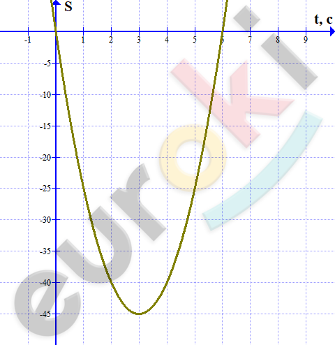 Материальная точка движется по оси Oз по закону: s=30t+5t^2, где s – координата точки, t – время движения (в секундах). Укажите момент времени, когда координата s точки будет наименьшей.
