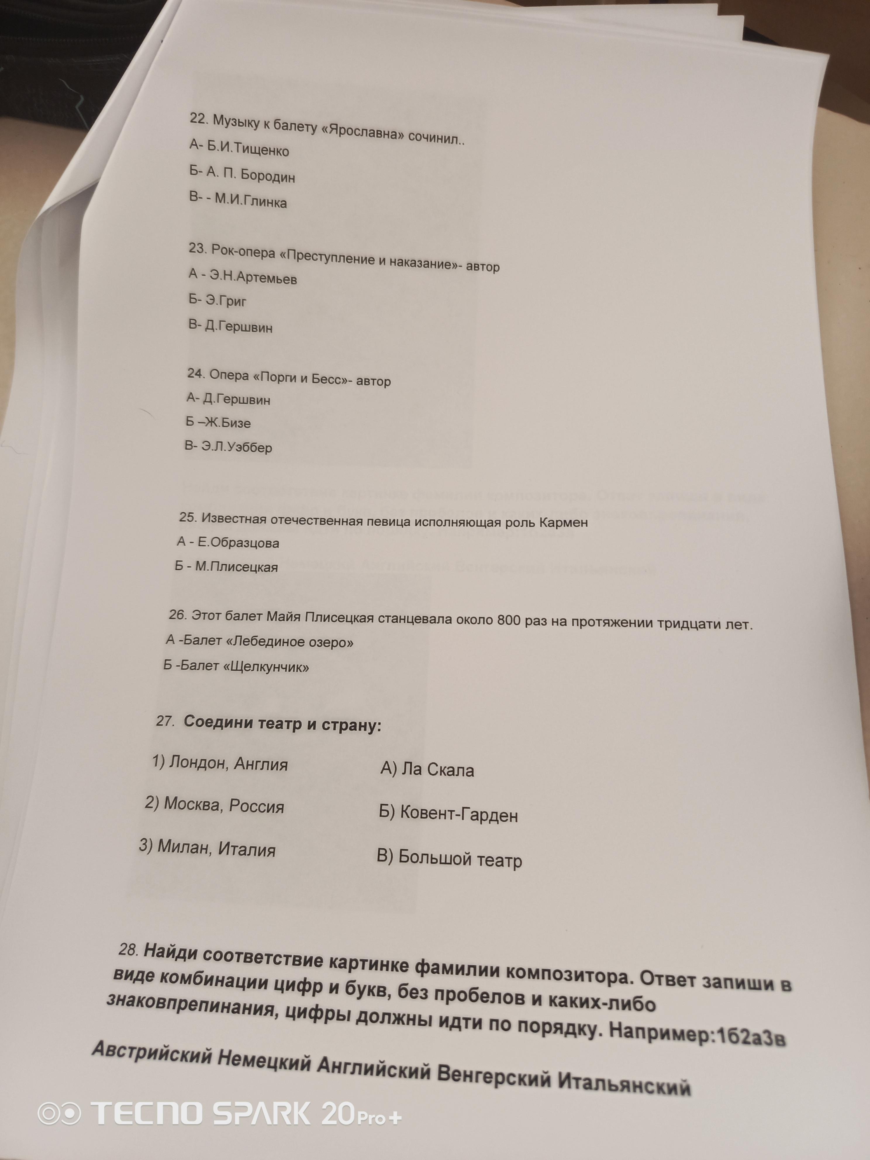 28. Найди соответствие картинке фамилии композитора. Ответ запиши в виде комбинации цифр и букв, без пробелов и каких-либо знаков препинания, цифры должны идти по порядку. Например: 162а3в