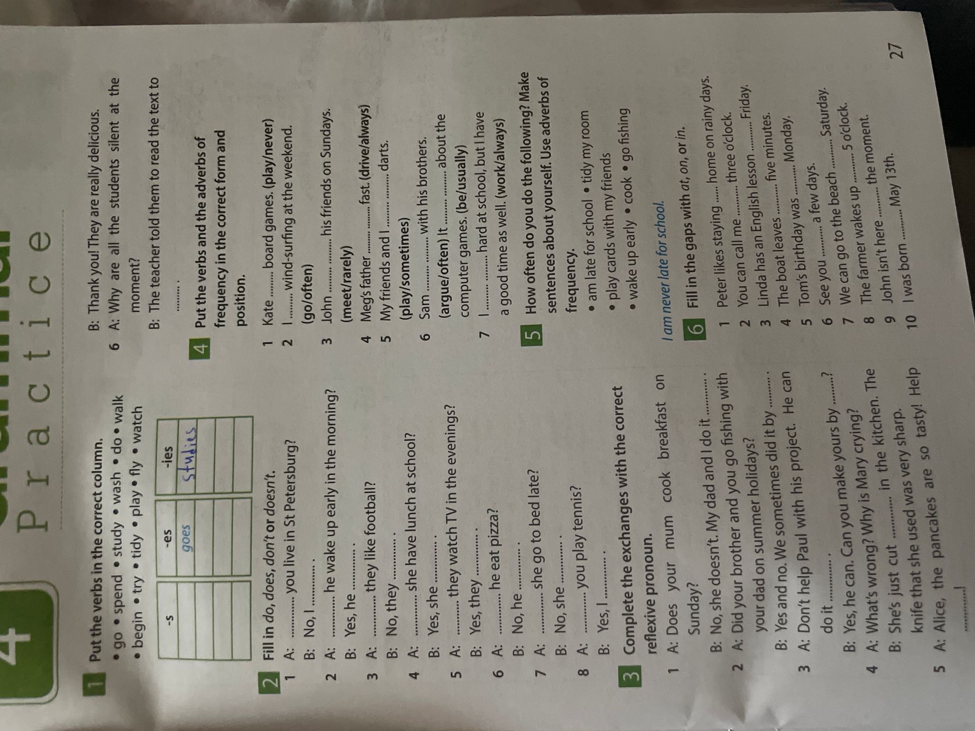 - 4 Put the verbs and the adverbs of frequency in the correct form and position.