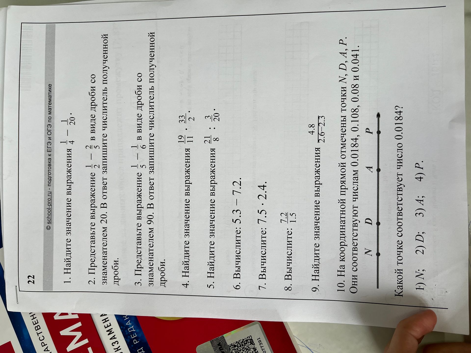 1. На координатной прямой отмечены точки N, D, A, P. Они соответствуют числам 0.0184, 0.108, 0.08 и 0.041.