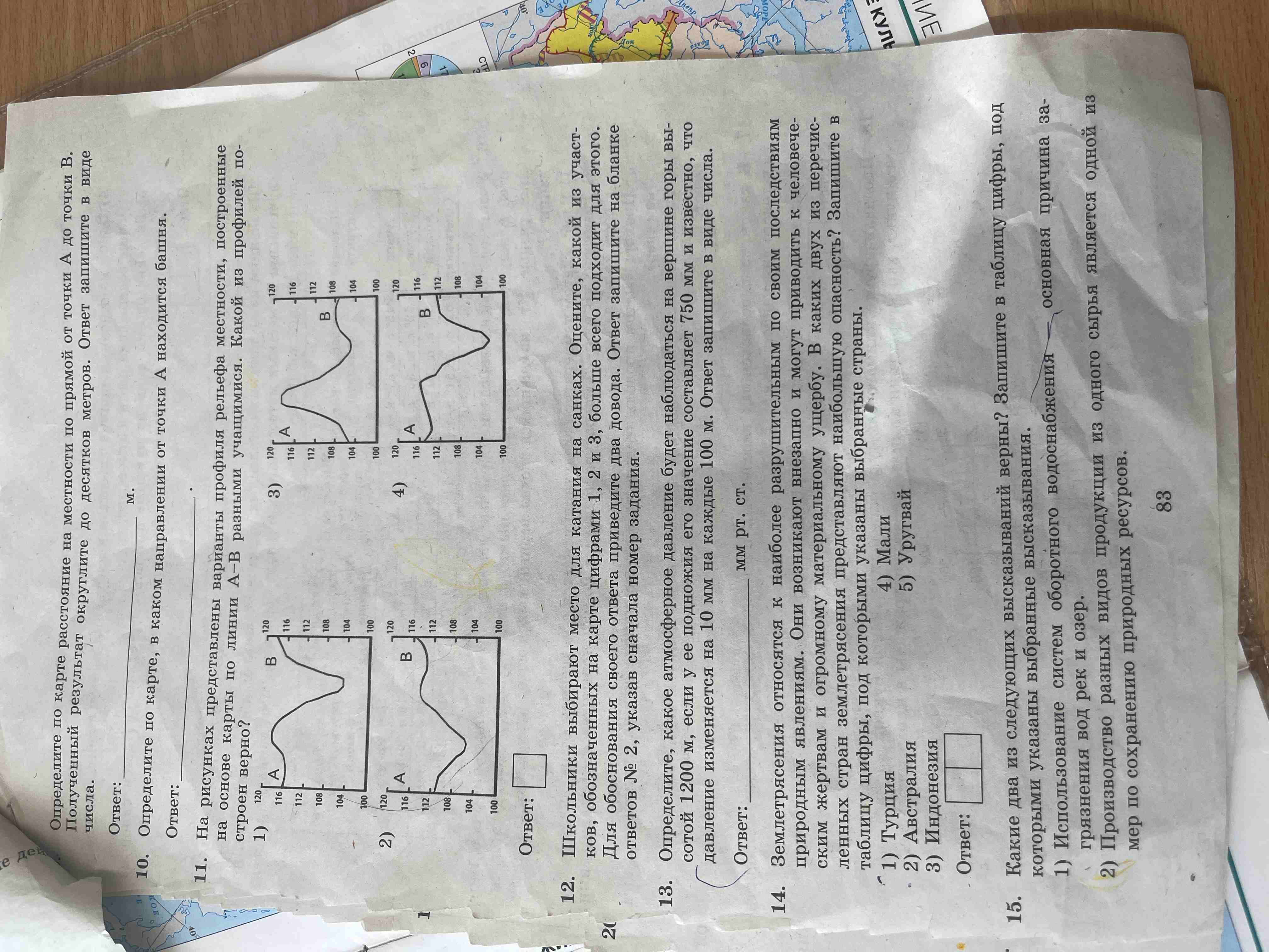| 3 | Правильный ответ. Профиль соответствует рельефу на карте: плавный подъем от точки B к точке A. |