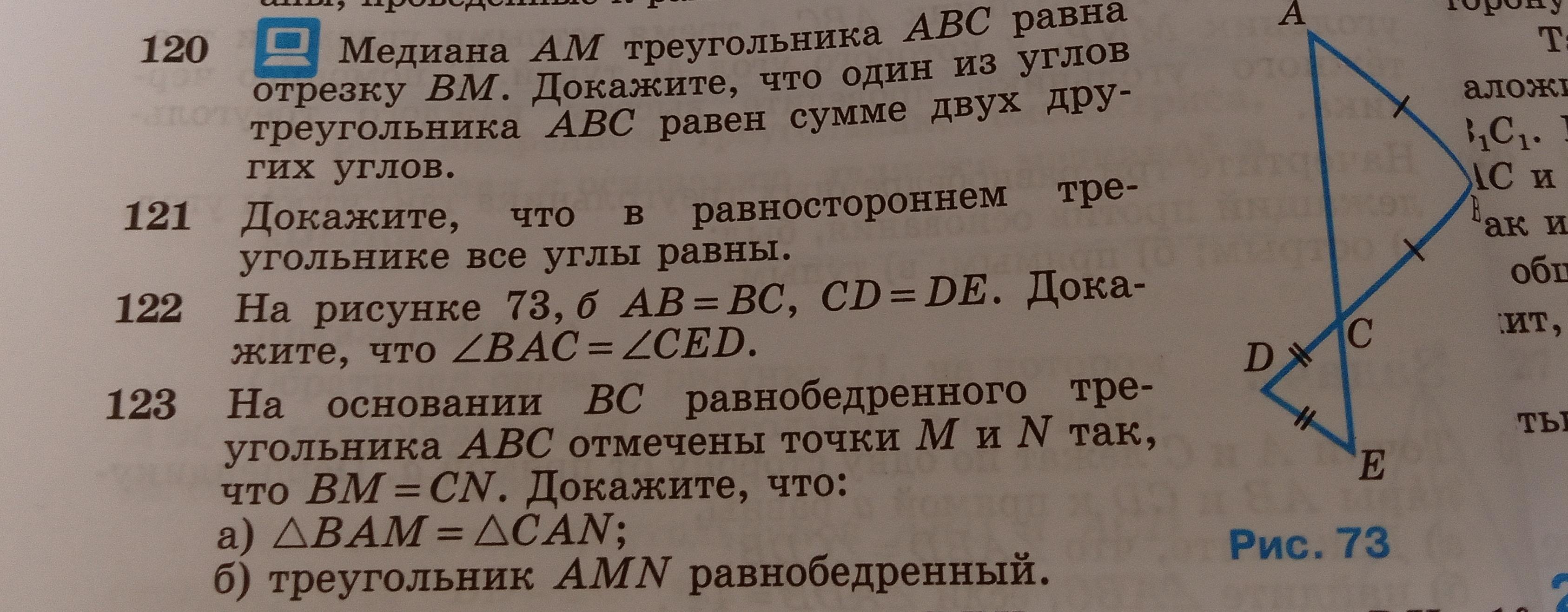 Так как ∠BCA = ∠DCE, и ∠BAC = ∠BCA, и ∠CED = ∠DEC, то ∠BAC = ∠CED.