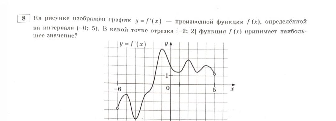 На отрезке [-2; 2] производная функции $$f'(x)$$ положительна на отрезке [-2; 0] и отрицательна на отрезке [0; 2]. Это означает, что функция возрастает на отрезке [-2; 0] и убывает на отрезке [0; 2]. Таким образом, точка x = 0 является точкой максимума функции на отрезке [-2; 2].
