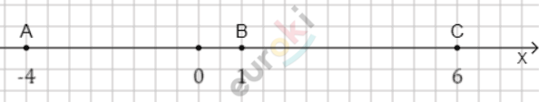 Контрольные задания > Начертите координатную прямую и отметьте на ней точки А (-4) и В (1). Постройте точку С, симметричную точке А относительно точки В, и определите её координату.