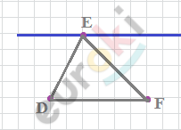 Начертите треугольник DEF и проведите через вершину Е прямую, параллельную противоположной стороне.