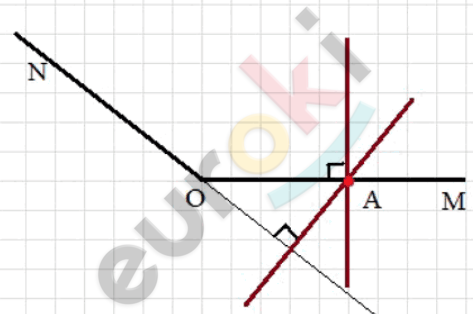 Контрольные задания > Начертите угол MON, градусная мера которого равна: 142^о. Отметьте на луче ОМ точку A и проведите через неё прямые, перпендикулярные прямым ОМ и ON.