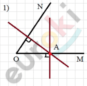 Начертите угол MON, градусная мера которого равна: 56^о. Отметьте на луче ОМ точку A и проведите через неё прямые, перпендикулярные прямым ОМ и ON.