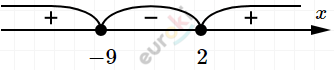 \[Ответ:\ \ ( - \infty;\ - 9\rbrack \cup \lbrack 2;\ + \infty).\]