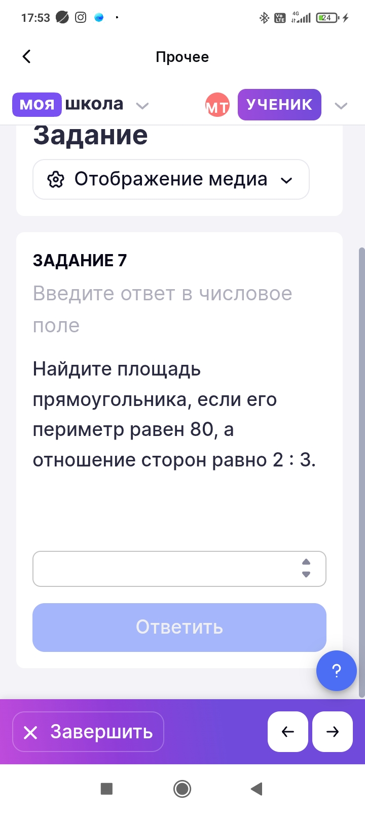 Ответ: Площадь прямоугольника равна 384.