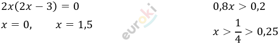 \[\left\{ \begin{matrix} 4x² - 6x \leq 0\ \ \\ 0,8x - 0,2 > 0 \\ \end{matrix} \right.\ \]