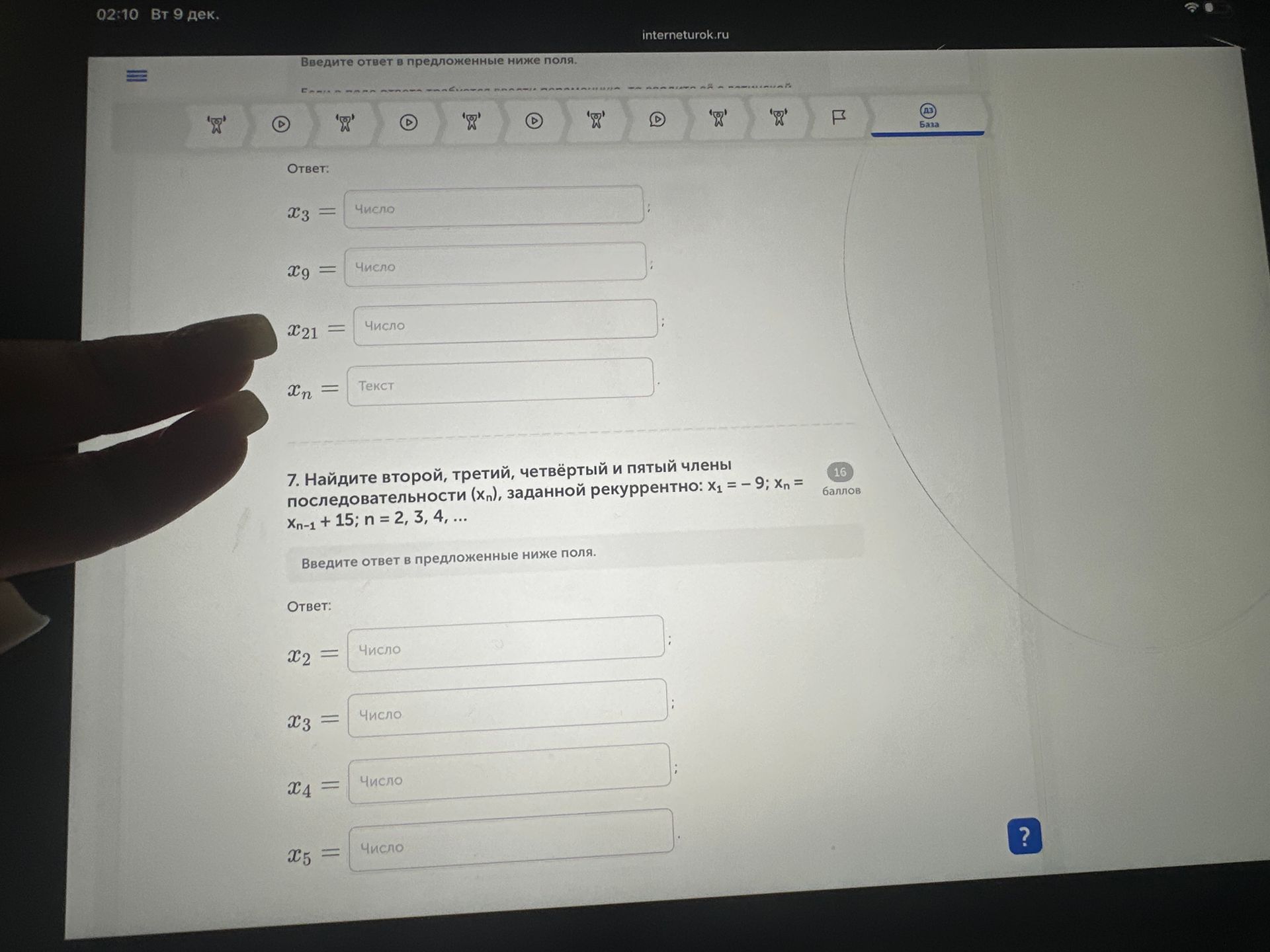 Ответ: x₂ = 6; x₃ = 21; x₄ = 36; x₅ = 51