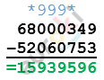 Найдите значение разности: 5 000 000 000-62 532 587.