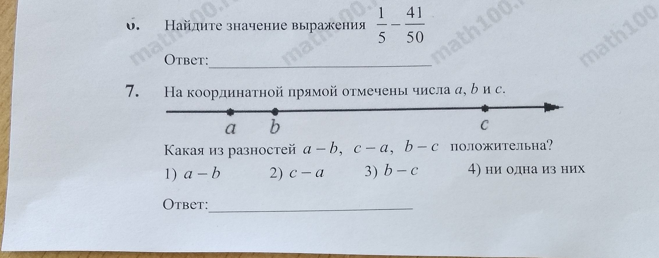 $$\frac{10}{50} - \frac{41}{50} = \frac{10 - 41}{50} = \frac{-31}{50}$$Ответ: -31/50