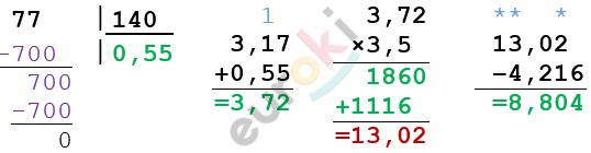 \[(3,17 + 0,77\ :1,4) \cdot 3,5 - 4,216 =\]