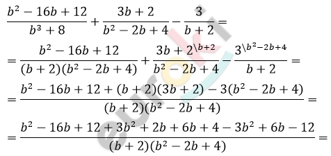 \[= \frac{b^{2} - 2b + 4}{(b + 2)(b^{2} - 2b + 4)} = \frac{1}{b + 2}\]