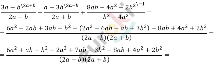 \[= \frac{8a^{2} - 2b^{2}}{4a^{2} - b^{2}} = \frac{2\left( 4a^{2} - b^{2} \right)}{4a^{2} - b²} = 2.\]