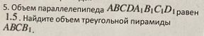 Объем параллелепипеда $$ABCDA_1B_1C_1D_1$$ равен 1,5.