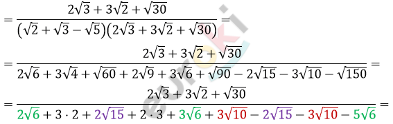 \[= \frac{2\sqrt{3} + 3\sqrt{2} + \sqrt{30}}{6 + 6} =\]