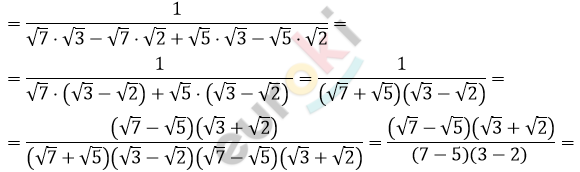 \[= \frac{\left( \sqrt{7} - \sqrt{5} \right)\left( \sqrt{3} + \sqrt{2} \right)}{2 \cdot 1} =\]