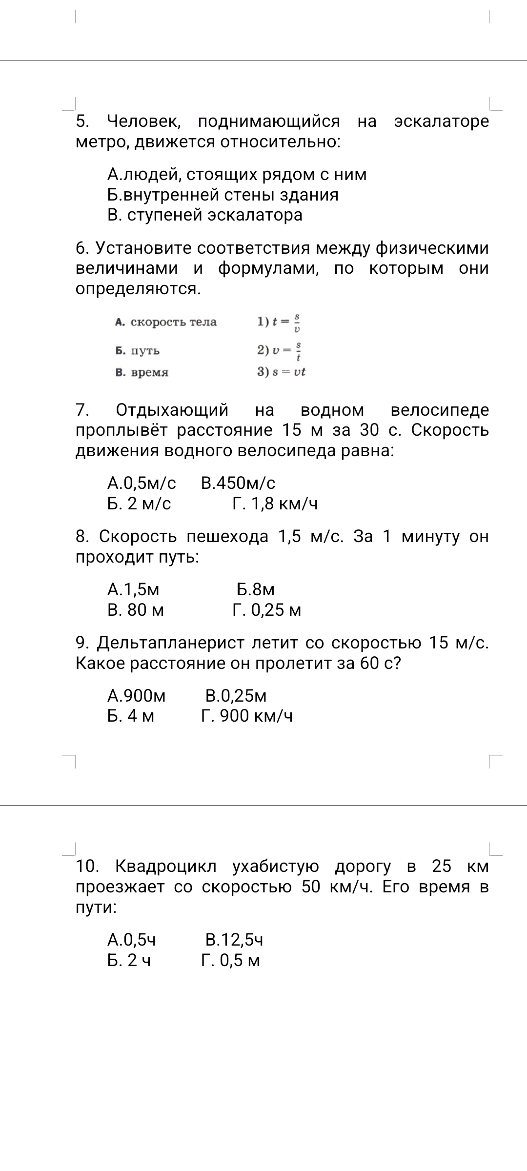 Отдыхающий на водном велосипеде проплывёт расстояние 15 м за 30 с. Скорость движения водного велосипеда равна: