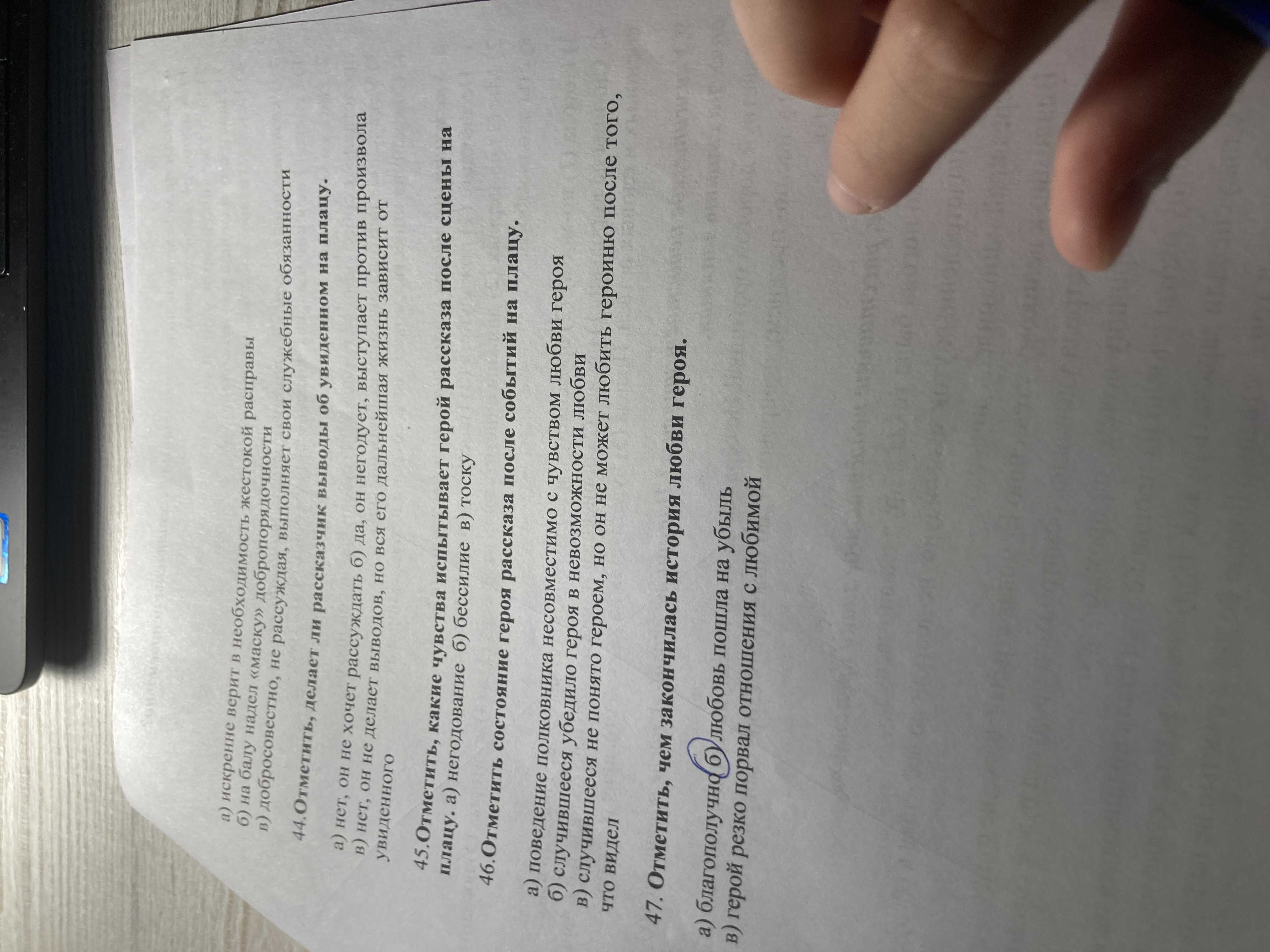 Контрольные задания > 46. Отметить состояние героя рассказа после событий на плацу.