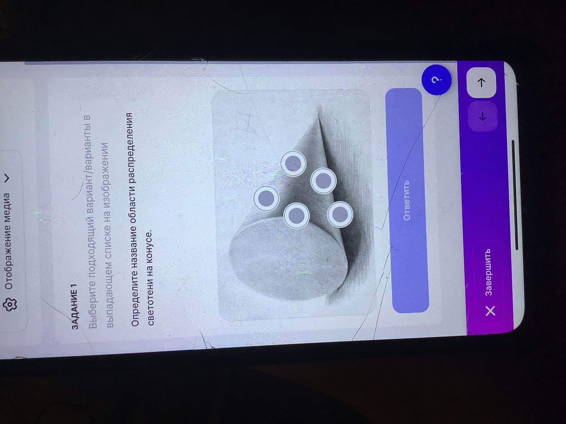 Для решения данного задания необходимо определить название области распределения светотени на конусе.