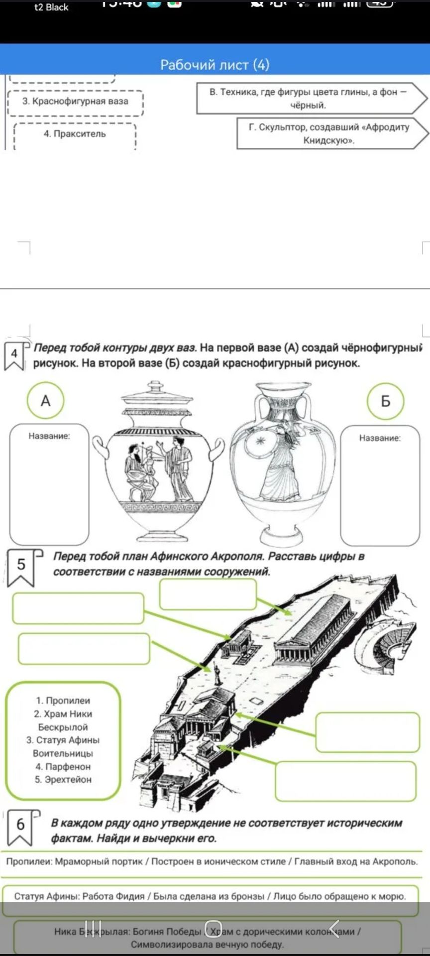 Перед тобой план Афинского Акрополя. Расставь цифры в соответствии с названиями сооружений.