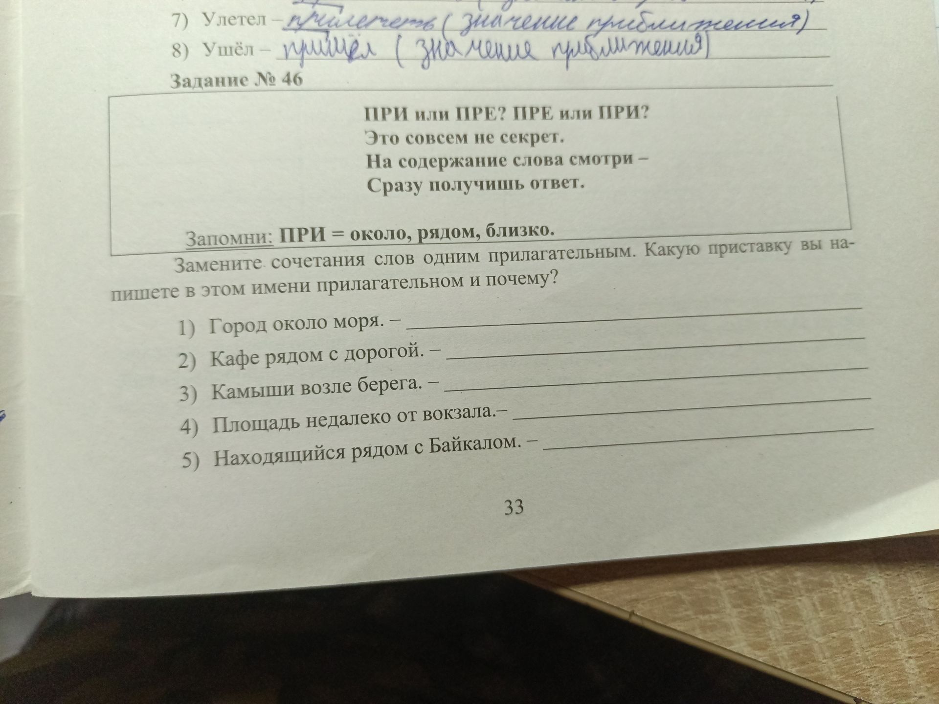 Чтобы заменить сочетание слов одним прилагательным и определить приставку, нужно использовать знания о приставках ПРЕ- и ПРИ- в русском языке.