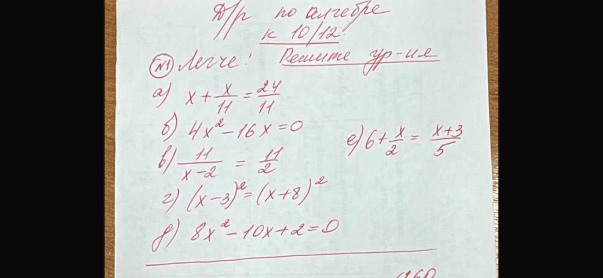 д) $$8x^2 - 10x + 2 = 0$$