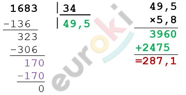 \[2)\ 49,5 \cdot 5,8 = 287,1\ (км) - проедет\ \]